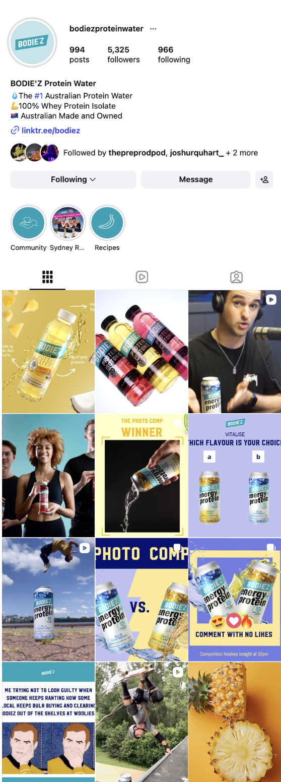 Social Media Manager. I was hired on as Social Media Manager and Content Creator to this revolutionary and growing Protein Water brand. I cleaned up their social medias, helped them streamline their workflow and assisted in their rebrand and pivotted social media strategy. I was responsible for the entire marketing department, content creation, community management, email marketing/funneling, social media accounts and website updates. Swipe for before and after.